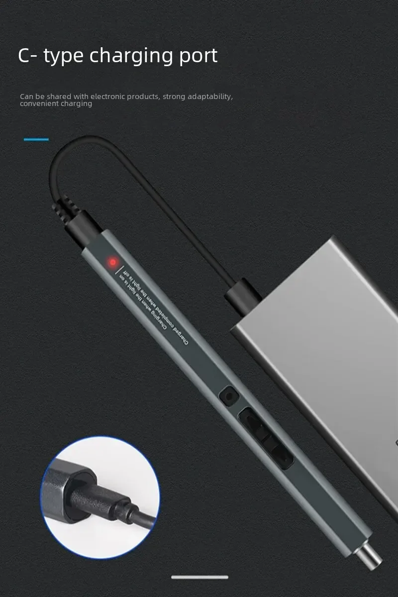 This electric screwdriver set features a rechargeable battery, which means you won't have to keep buying new batteries. This is a great benefit, as it is not only cost-effective but also eco-friendly. You can easily charge it using a standard USB charger, so you can use it whenever you need to. Additionally, the battery life is impressive, allowing you to complete multiple tasks without interruption.